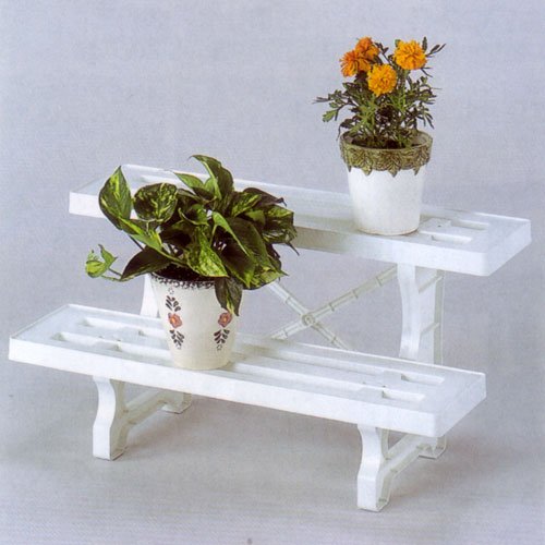 ボックス型プランター用のスタンド。ボックス型プランターの寄せ植えを高低差をつけて立体的に見せたり、また地面から少し浮かせることで水はけもよくなり、地表の熱気による植物へのダメージも少なくします。ベランダなどのコンクリート床には最適です。