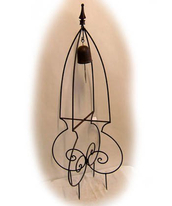 ベルのついたユニークな形のオベリスクトレリス。風になびいてベルが鳴ります。 アイアンの優雅な曲線が植物の美しさを引き立てます。鉢土や地面に差し込んでご利用ください。