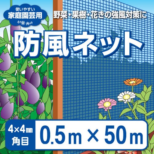 サイズ:幅 約0.5m×長さ 約50m 編み目のサイズ:約 4mm×4mm角目 素材:ポリエチレン カラー:ブルー