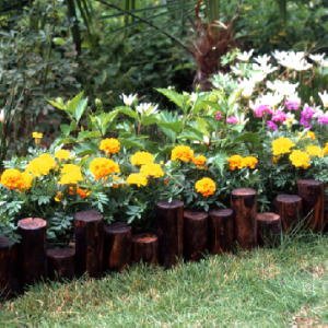 ナチュラル感ある風合いで花壇を飾り立てます。見栄えのいい花壇周りを手軽に作るうえでおすすめなのがこの連杭。ナチュラルな天然木の温かみある色合いが程よく土とマッチします。地中に5〜10cm程度埋め込んで設置します。中にはワイヤーが入っており、杭同士をしっかりと連結。多少角度をつけることが出来ますのでカーブを描いたり、円形に組んだりと様々なレイアウトが可能です。特殊防虫防腐加工を施していますので耐候性がよく、手も汚れにくいのも嬉しいですね。それぞれ高さが不揃いなので複数枚並べるとより自然な流れが楽しめます。花と野菜とに花壇を区切りたい場合や、通路との境界線を作りたいときなど幅広い用途でご使用頂けます。